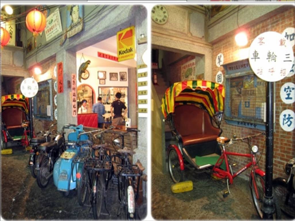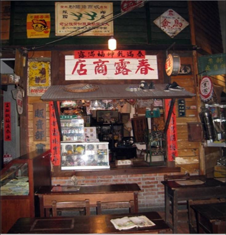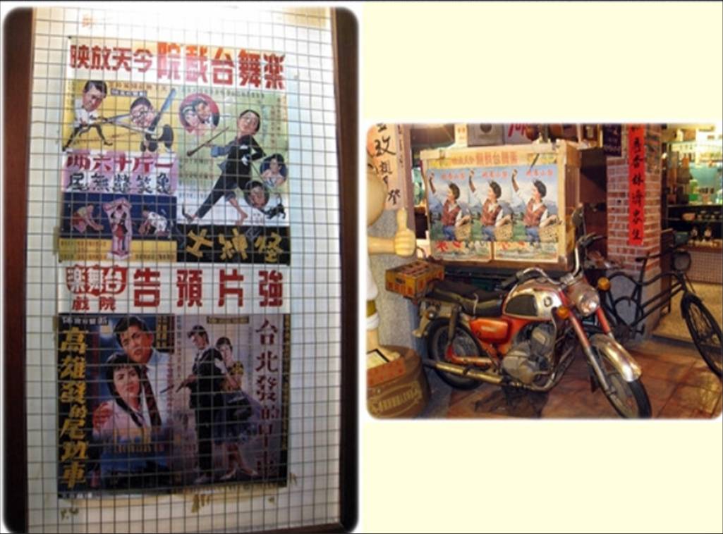 裡頭有許多台灣早期的舊海報、舊文物還有古早學生用的課桌椅